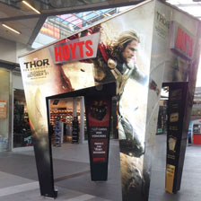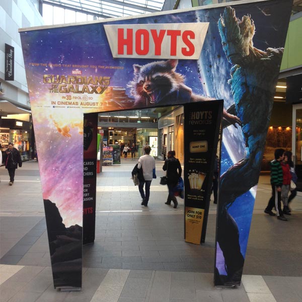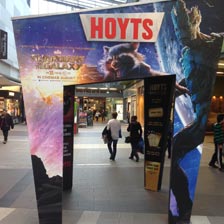 Design for Hoyts Kiosk, adapting keyart to a multi-sided structure.