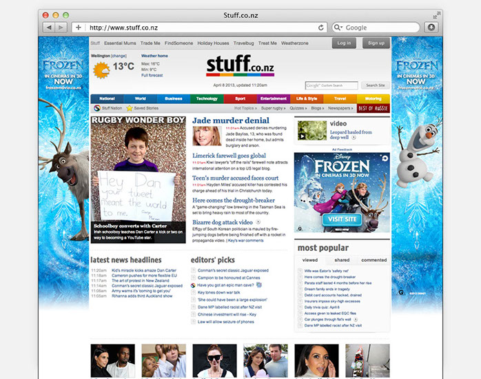 We often work with WALT DISNEY STUDIOS N.Z. for large online campaigns for locally released films. We adapt the artwork to multiple formats including web skins, EDMs, web banners, and animated ads.