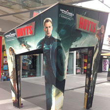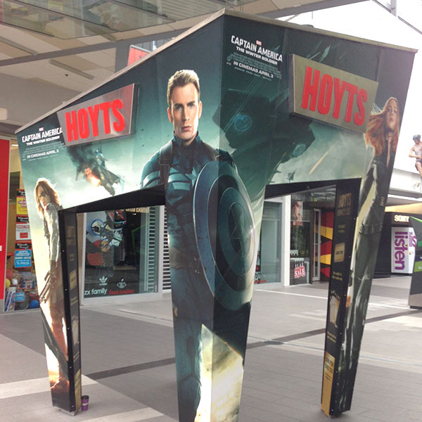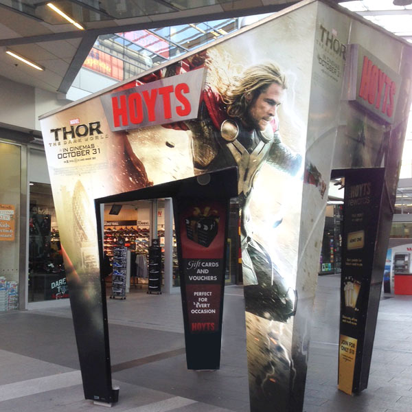 Design for Hoyts Kiosk, adapting keyart to a multi-sided structure.