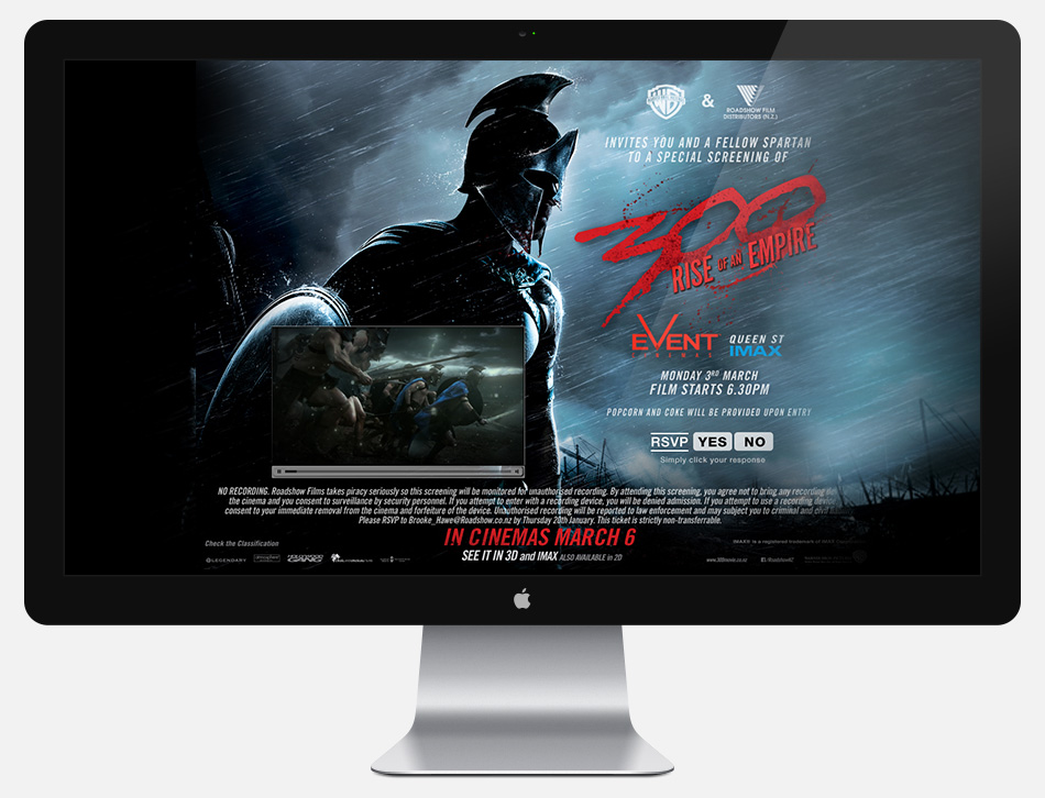 We work directly with Roadshow Films Distribution NZ to create customised email invitations