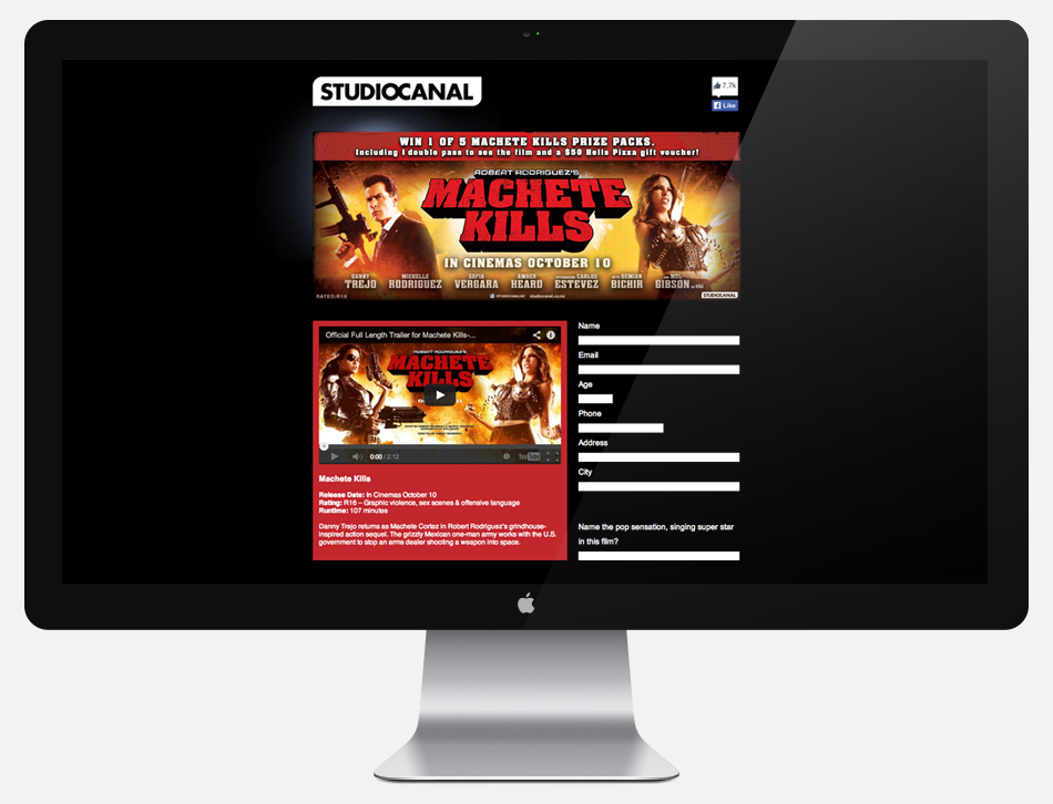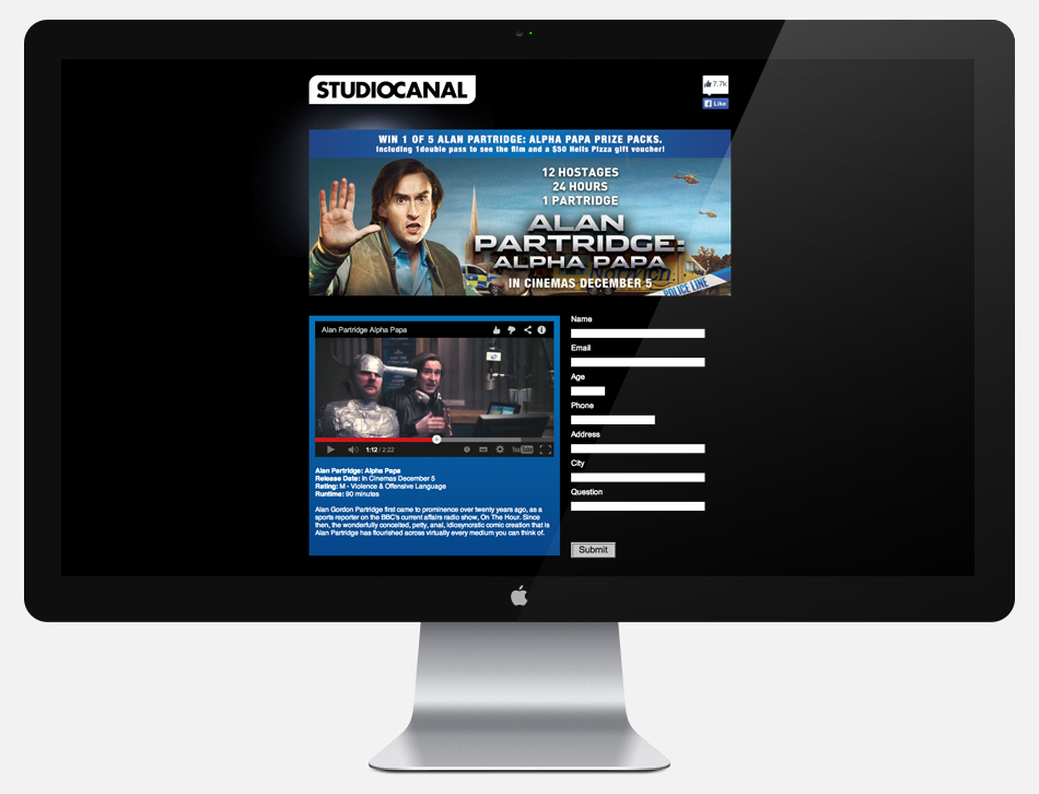 STUDIOCANAL N.Z. asked us to create a new competition platform for them to share via multiple social media channels. We created this new website that could be easily updated with key art from any film, which feeds all customer info into a database accessible by the client.
