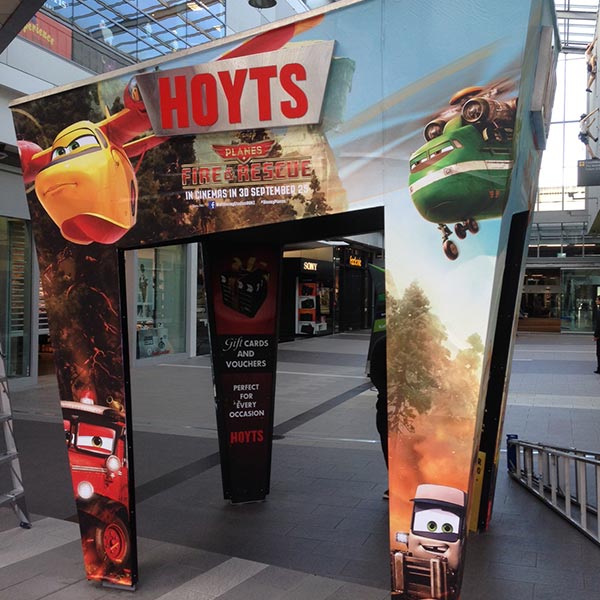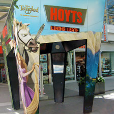 Design for Hoyts Kiosk, adapting keyart to a multi-sided structure.